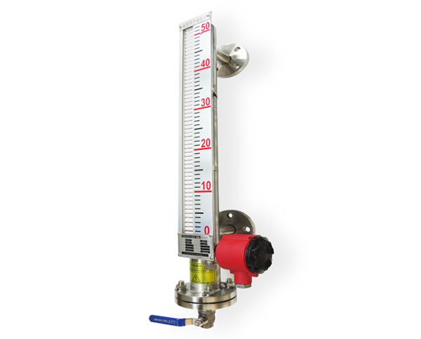 控制型是在翻柱液位計的基礎(chǔ)上增加了磁控開關(guān),在監(jiān)測液位的同時磁控開關(guān)信號可用于對液位進行控制或報警;遠傳型是在翻柱液位計的基礎(chǔ)上增加了 4~20mA 變送傳感器,在現(xiàn)場監(jiān)測液位的同時將液位的變化通過變送傳感器、線纜及儀表傳到控制室,實現(xiàn)遠程監(jiān)測和控制。