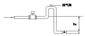 若管道落差超過5m,在流量計(jì)的下游安裝排氣閥