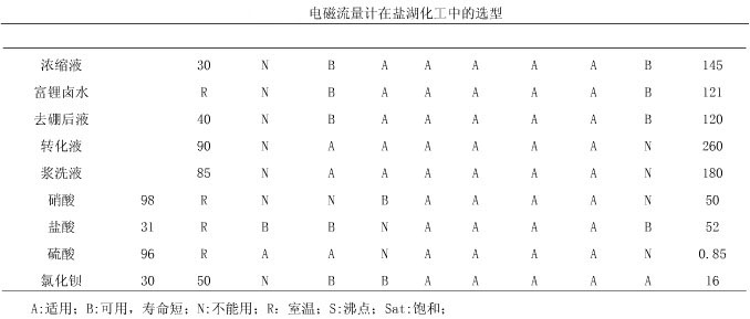 鋰業(yè)公司為鹽湖化工企業(yè),主要生產(chǎn)碳酸鋰硼酸、鉀肥等鹽湖化工產(chǎn)品,原料為曬制鹵水,此鹽湖屬硫酸亞性高鎂鋰比鹽湖,在鹽湖化工生產(chǎn)中產(chǎn)品齊全,也具有代表性。根據(jù)鹽湖化工原料特性,闡述電磁流量計選型。鹽湖化工原理的特點為電導(dǎo)率高(平均在150ms/cm),強腐蝕,易結(jié)晶。生產(chǎn)過程中所需要的輔料主要強酸、強堿。生產(chǎn)車間的管道都為防腐塑料材質(zhì),生產(chǎn)環(huán)境溫度最高為90℃,最低為-30℃。鑒于以上工況,在鹽湖化工中電磁流量計比其他流量計具有精度高、壽命長、維護方便、性價比高的有點,在鹽湖化工中主要在反應(yīng)釜的定比例投放、貿(mào)易計量、體積計量等方面。