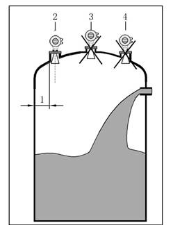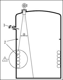 - 如果罐內(nèi)有(1)(2)干涉物件,應(yīng)采用導(dǎo)波管進行測量。