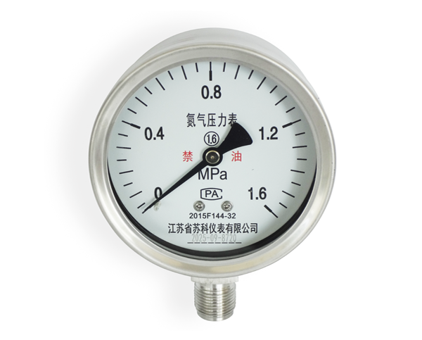氮氣壓力表適用于測量密閉容器或者管道內(nèi)氮氣介質(zhì)的壓力的場合,氮氣壓力表由導(dǎo)壓系統(tǒng)、齒輪傳動機構(gòu)、示數(shù)裝置、和外殼所組成。外殼為氣密性結(jié)構(gòu),能有效的保護內(nèi)部機件免受環(huán)境影響。